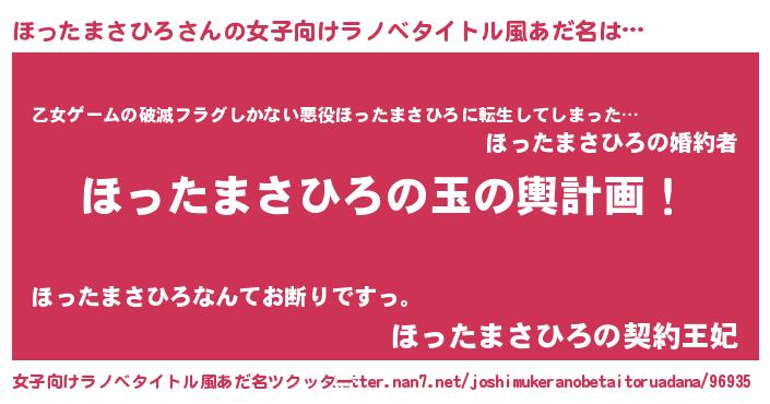 | 男性向けラノベタイトル風あだ名 | 『転生したらほったまさひろだった件』 |