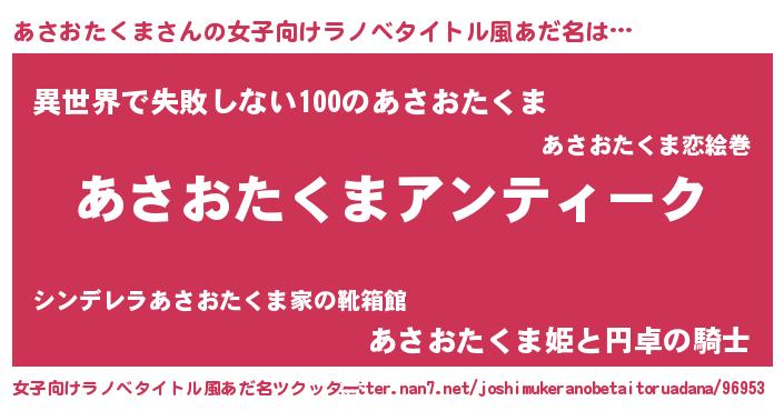 | 意味不明あだ名 | 『自称あさおたくま』 |