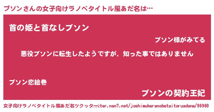| 男性向けラノベタイトル風あだ名 | 『この素晴らしい世界にブソンを!』 |