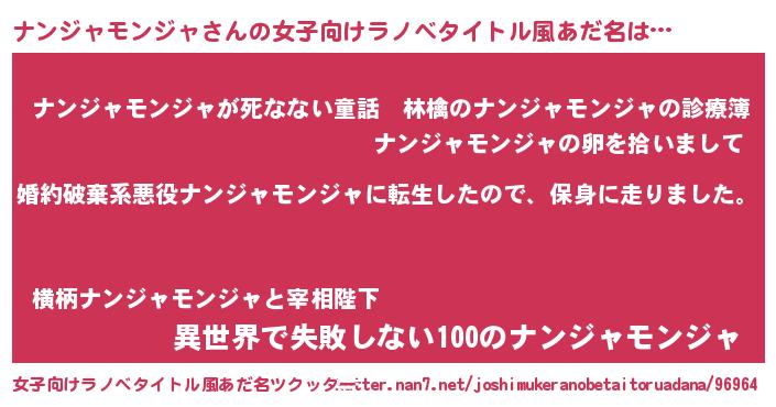 | 男性向けラノベタイトル風あだ名 | 『転生したらナンジャモンジャだった件』 |