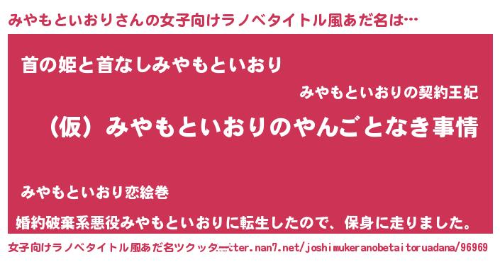 | 胡散臭い通販商品みたいなあだ名 | 『必ず成功するブレスレット…その名も「みやもといおり」』 |