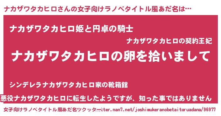 | 意味不明あだ名 | 『とにかく怪しいナカザワタカヒロ』 |