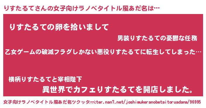 | 胡散臭い通販商品みたいなあだ名 | 『世界中を虜にした100年もののヴィンテージワイン…その名も「りすたるて」』 |