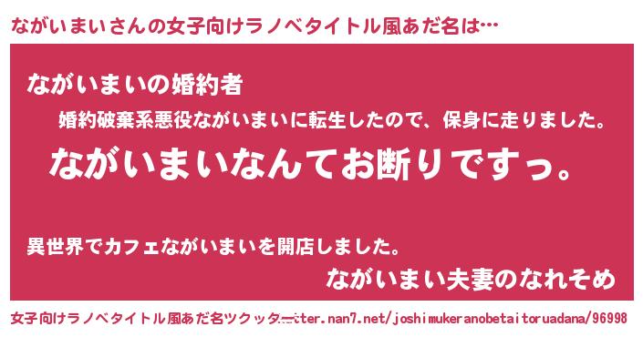 意味不明あだ名 | 『自称ながいまい』『永久保存ながいまい』 |