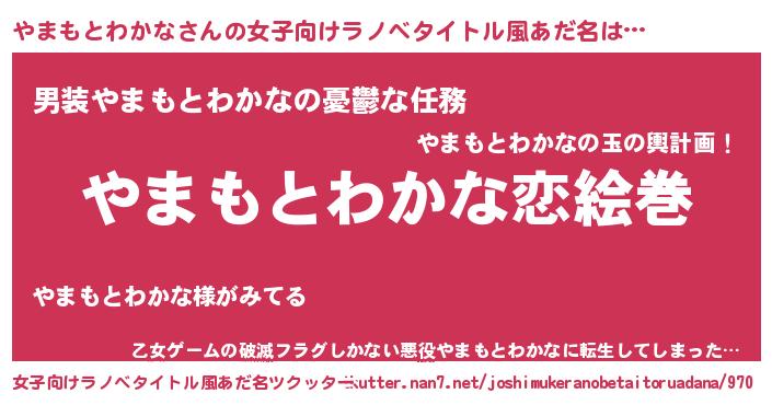 | 男性向けラノベタイトル風あだ名 | 『ノーゲーム・ノーヤマモトワカナ』 |