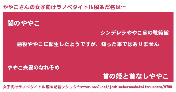 | 胡散臭い通販商品みたいなあだ名 | 『あなたにだけ特別に提供する100年もののヴィンテージワイン…その名も「ややこ」』 |