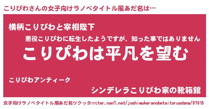 | 男性向けラノベタイトル風あだ名 | 『ダンジョンにこりぴわを求めるのは間違っているだろうか』 |