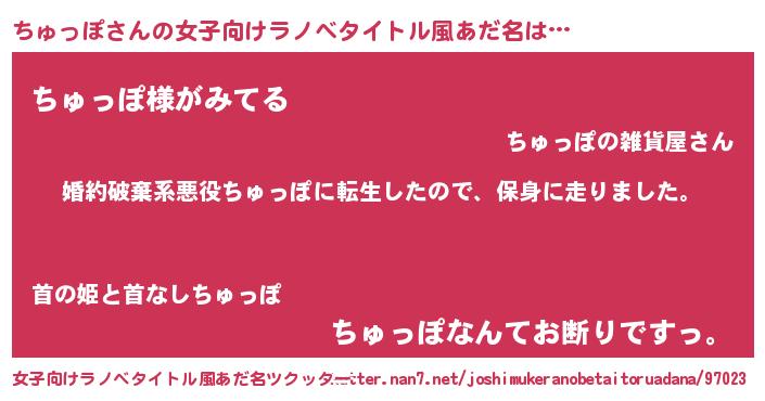 | 胡散臭い通販商品みたいなあだ名 | 『信頼と実績のサプリメント…その名も「ちゅっぽ」』 |