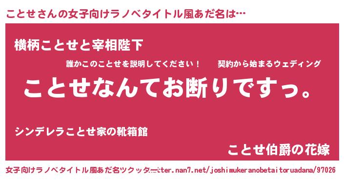 | 男性向けラノベタイトル風あだ名 | 『魔法科高校のことせ』『緋弾のコトセ』 |