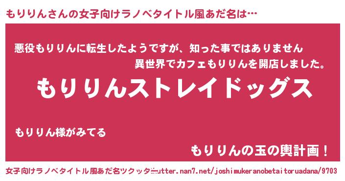 | 男性向けラノベタイトル風あだ名 | 『Re:もりりんから始める異世界生活』 |