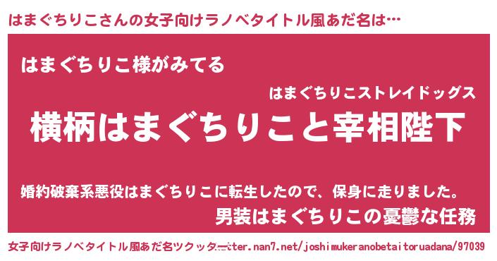 | 意味不明あだ名 | 『とにかく怪しいはまぐちりこ』 |