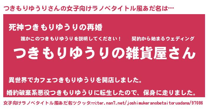 | 男性向けラノベタイトル風あだ名 | 『やはりつきもりゆうりの青春ラブコメはまちがっている 』 |