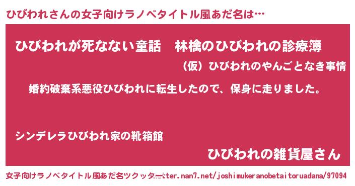 | 男性向けラノベタイトル風あだ名 | 『転生したらひびわれだった件』 |