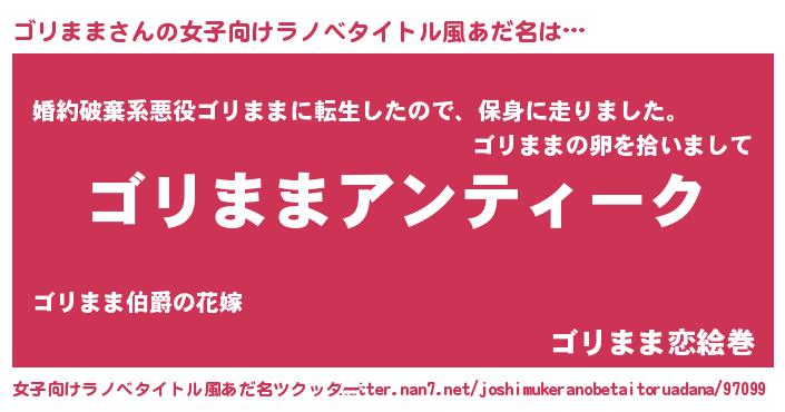 | 意味不明あだ名 | 『自称ゴリまま』『めかぶ科ゴリまま属』 |