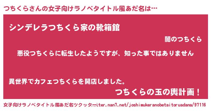 | 男性向けラノベタイトル風あだ名 | 『この素晴らしい世界につちくらを!』 |