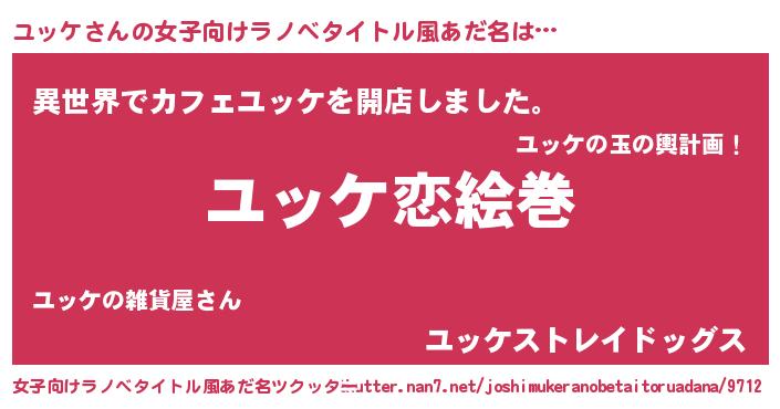 | 男性向けラノベタイトル風あだ名 | 『ノーゲーム・ノーユッケ』 |