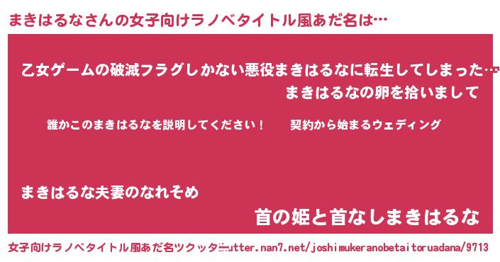 | 男性向けラノベタイトル風あだ名 | 『マキハルナアートオンライン』 |