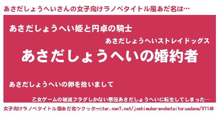 | ファンタジー風あだ名 | 『エターナルアサダショウヘイー』 |