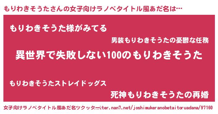 | 胡散臭い通販商品みたいなあだ名 | 『絶対に幸福をもたらす健康食品…その名も「もりわきそうた」』 |