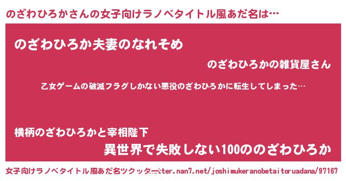 | 男性向けラノベタイトル風あだ名 | 『この素晴らしい世界にのざわひろかを!』 |