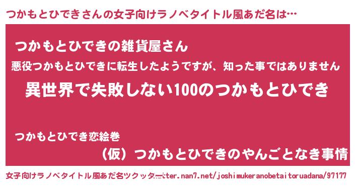 | 男性向けラノベタイトル風あだ名 | 『つかもとひできという概念が存在しない退屈な世界 』 |