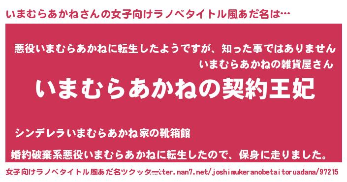 | 男性向けラノベタイトル風あだ名 | 『いまむらあかねという概念が存在しない退屈な世界 』 |