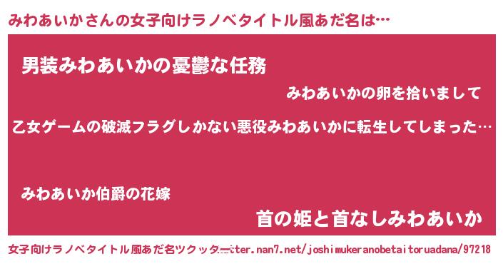 | 男性向けラノベタイトル風あだ名 | 『魔弾の王とみわあいか』 |