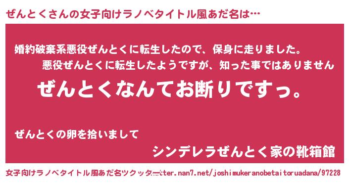 男性向けラノベタイトル風あだ名 | 『魔法科高校のぜんとく』 |