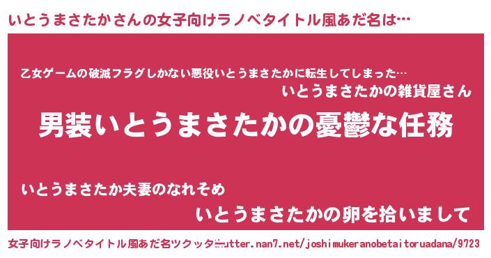 | 男性向けラノベタイトル風あだ名 | 『冴えないいとうまさたかの育てかた』 |