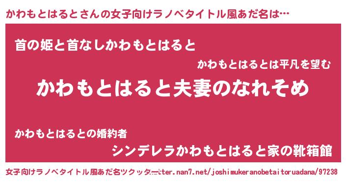 | 胡散臭い通販商品みたいなあだ名 | 『100人中100人が認めたイリジウム磁石…その名も「かわもとはると」』 |