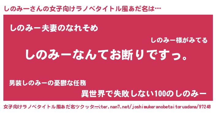 | 意味不明あだ名 | 『自称しのみー』『永久保存しのみー』 |