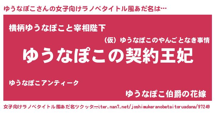 | 胡散臭い通販商品みたいなあだ名 | 『来世でも幸せになれる水素水…その名も「ゆうなぽこ」』 |