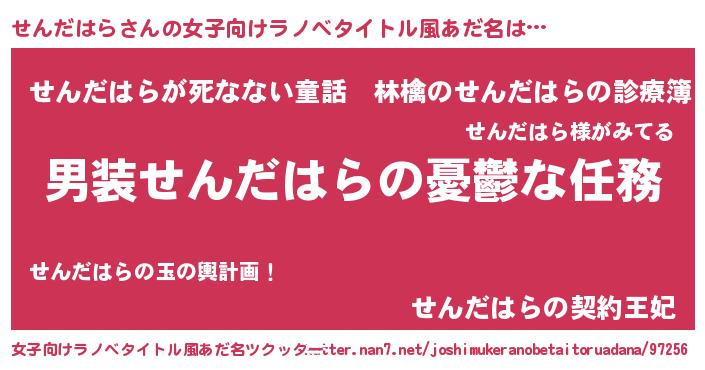 | 男性向けラノベタイトル風あだ名 | 『冴えないせんだはらの育てかた』 |