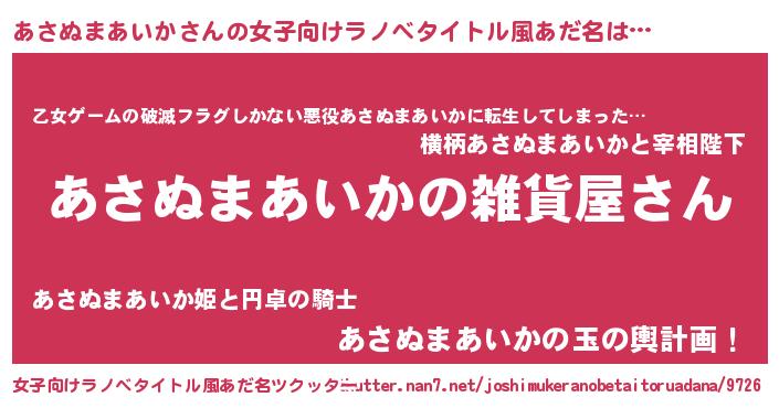 | 男性向けラノベタイトル風あだ名 | 『やはりあさぬまあいかの青春ラブコメはまちがっている 』 |