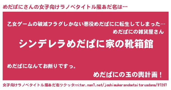 | 男性向けラノベタイトル風あだ名 | 『冴えないめだぱにの育てかた』 |