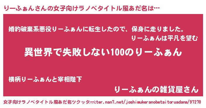 | 胡散臭い通販商品みたいなあだ名 | 『絶対に幸福をもたらす水素水…その名も「りーふぁん」』 |