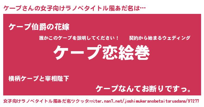 | 男性向けラノベタイトル風あだ名 | 『ノーゲーム・ノーケープ』 |