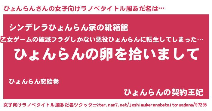 | 男性向けラノベタイトル風あだ名 | 『ひょんらんの嫁は女の子じゃないと思った?』 |
