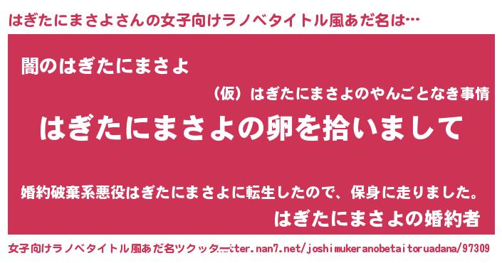 男性向けラノベタイトル風あだ名 | 『はぎたにまさよの嫁は女の子じゃないと思った?』 |