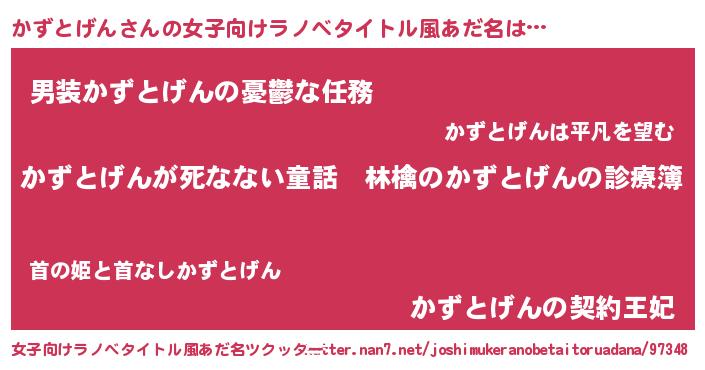 | 男性向けラノベタイトル風あだ名 | 『魔弾の王とかずとげん』 |