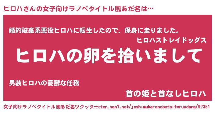 | ヒーロー風カッコイイあだ名 | 『幻影騎士ヒロ』『ウルトラ戦士ヒロハ』 |