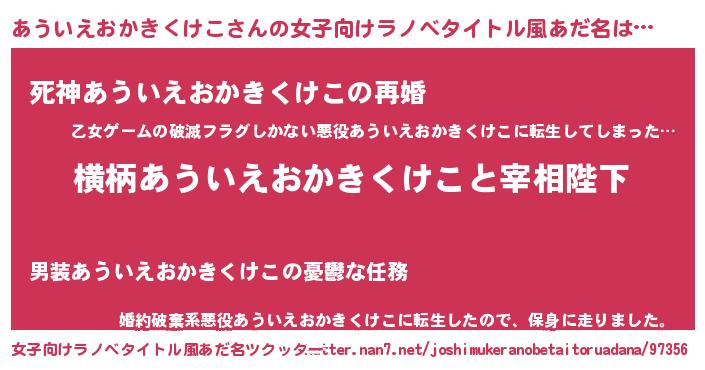 | 伝説のあだ名 | 『救世主となる錬金術士あういえおかきくけこ』 |