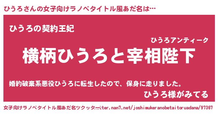 | 男性向けラノベタイトル風あだ名 | 『ひうろに滅ぼされるだけの簡単なお仕事です』 |