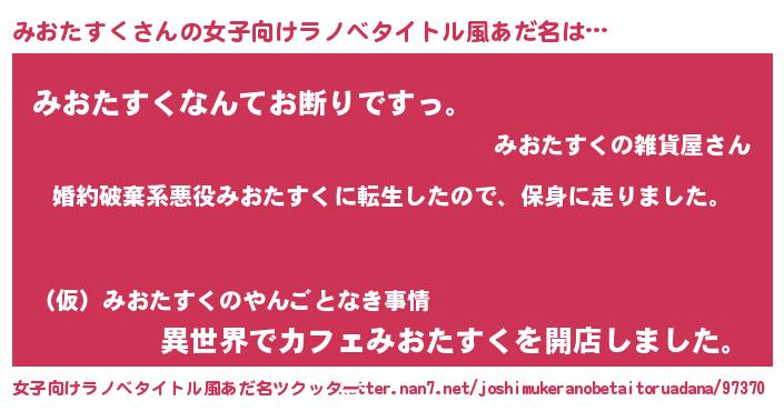 | 胡散臭い通販商品みたいなあだ名 | 『テレビで話題のアガリクス…その名も「みおたすく」』 |
