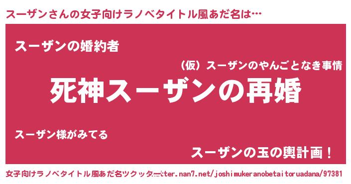 | 伝説のあだ名 | 『救世主となる錬金術士スーザン』 |