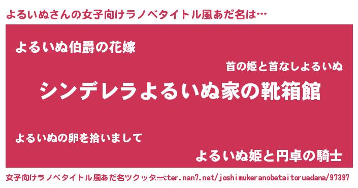 | 男性向けラノベタイトル風あだ名 | 『緋弾のヨルイヌ』『よるいぬの憂鬱』 |
