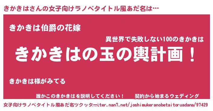 | 男性向けラノベタイトル風あだ名 | 『転生したらきかきはだった件』 |
