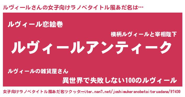 | 意味不明あだ名 | 『自称ルヴィール』『永久保存ルヴィール』 |