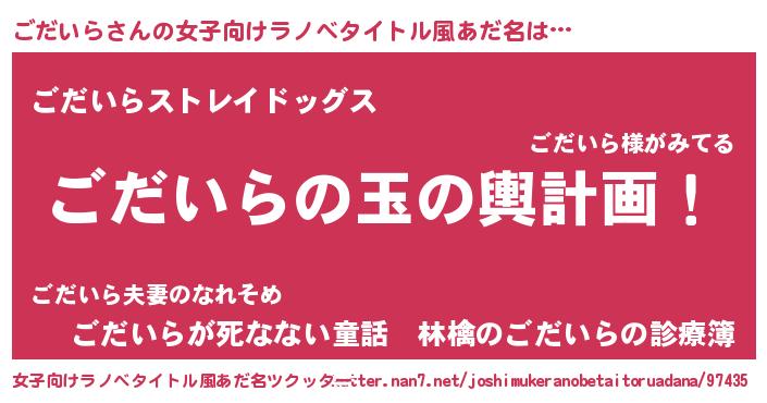 | 胡散臭い通販商品みたいなあだ名 | 『芸能人もオススメする高麗人参…その名も「ごだいら」』 |