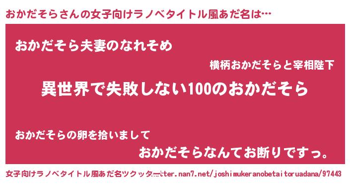 | 胡散臭い通販商品みたいなあだ名 | 『絶対に幸福をもたらす水素水…その名も「おかだそら」』 |